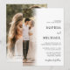 Compartilhe a sua alegria com este belo convite de casamento projetado e facilmente personalizável. Apresentando suas fotos favoritas na frente e no verso, mostrando seu noivado ou momentos especiais, este design cria uma primeira impressão pessoal e memorável. A tipografia elegante complementa a imagem, apresentando seus nomes e detalhes de casamento de uma forma na moda e sincera, perfeita para convidar entes queridos a celebrar seu sindicato.