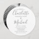 Apresentando nomes elegantes de estilo de assinatura juntamente com sua foto especial, esta cinza simples e este convite circular de casamento branco podem ser personalizados com seus detalhes de casamento em caracteres de cinza. Projetado por Thisnotme©