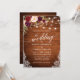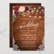 Madeira Rústica, Script de Caligrafia Moderna, Watercolor Burgundy Marsala, Convite Floral de Casamento com Rosas Turvas e Rosa. Luzes de Cordas brilhantes. Foto de volta.
