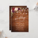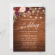 Madeira Rústica, Script de Caligrafia Moderna, Watercolor Burgundy Marsala Convite Floral para Casamento com Rosas Turvas e Rosa. Luzes de Cordas brilhantes. Foto de volta.