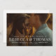 Uma camada moderna com grandes nomes e uma foto de sangria de cheio são as características deste convite de casamento. Coordena o convite adicional e o dia dos itens com esta design visitando a Coleção de Casamentos de Sobreposição Moderna por Stacey Meacham.