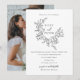 Este elegante convite botânico preto e branco apresenta uma bela crista de casamento foliar com roteiro de caligrafia e nomes personalizados na frente, e uma foto de cheio na parte de trás do cartão. Compre esta loja para a coordenação clássica dos artigos de casamento.