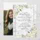 Crie o convite perfeito para o casamento moderno com este design floral branco neutro com flores de aquarela, com fundo de mármore faux carrera, tipografia de guião manuscrita e poeira de ouro falso. A parte de trás do convite apresenta a sua fotografia de noivado favorita. Entre em contato com o designer para produtos correspondentes. Copyright Elegant Invites, todos os direitos reservados.
