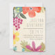Flores rústicas, de aquarela em laranja, ameixa, verdes, amarelas e azul ardósia. Fundo esbranquiçado com um aspecto ligeiramente texturizado. Adicione um toque especial com uma foto atrás. Simples, na moda, colorido - perfeito para seu dia especial! Substitua a imagem de modelo antes de comprar.