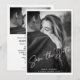 Casamento de Foto com Script Branco Moderno Salve a Data, Esta moda, elegante e belíssima letra de caligrafia em branco sobrepõe sua foto, salve o cartão de data. O convite apresenta um belo script Save the Date, manuscrito em espírito livre. Todo texto é simples de editar. Um na moda e um convite simples que realçará as fotos pessoais de sua data!, Clique no botão editar para personalizar este design.