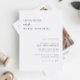 Este convite de casamento moderno minimalista apresenta um design elegante e limpo, perfeito para anunciar seu dia especial com sofisticação. A frente mostra os detalhes essenciais do seu casamento, enquanto a parte de trás apresenta uma foto impressionante e de alta qualidade do casal feliz. Este toque pessoal adiciona uma camada extra de emoção e entusiasmo ao convite, fazer que seja um bem-estar apreciado para os seus convidados. Impresso em estoque de cartolina de alta qualidade, este convite é perfeito para qualquer tema de casamento, do tradicional ao contemporâneo. Faça seu convite de casamento se destacar com esta bela design com sua própria foto personalizada.