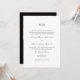 O convite de casamento simples e clássico, preto e branco, apresenta uma tipografia elegante e uma design sofisticada. O verso inclui uma foto personalizada e um código rsvp qr, para que os convidados possam responder no seu site de casamento.