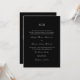 O convite de casamento simples e clássico, preto e branco, apresenta uma tipografia elegante e uma design sofisticada. O verso inclui uma foto personalizada e um código rsvp qr, para que os convidados possam responder no seu site de casamento.