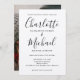 Apresentando nomes de estilo de assinatura, este elegante convite de casamento pode ser personalizado com suas informações em caracteres negros quentes e sua foto especial em um cartão kraft rústico. Projetado por Thisnotme©