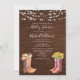 Apresentando um fundo de madeira quente, este belo convite de casamento russo ocidental mostra luzes de cordas, um par de suas botas com seu chapéu de cowboy, e um par de suas botas com girassóis - perfeito para um casamento outono rústico! O texto apresenta os nomes dele e dela na popular tipografia escrita escrita com letra de mão. A parte de trás do convite apresenta a sua fotografia de noivado favorita. Copyright Elegant Invites, todos os direitos reservados.