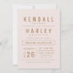 Design de tipografia quic moderna em cor rosa-claro e dourado, convites de casamento simples e elegantes, excelente para casamento formal minimalista, casamento simples moderno.