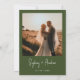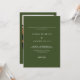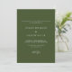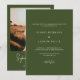 O convite para o casamento apresenta uma design moderna minimalista com caligrafia branca em um elegante fundo verde-oliva. Você pode carregar sua foto com seu cônjuge. Você pode facilmente editar o texto e a fonte usando a ferramenta design. Ver outros produtos desta coleção.