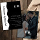 Anuncie seu amor moderno em estilo com este convite de casamento ousado de monograma preto e branco com design de onda lateral chic. Seus nomes são exibidos verticalmente à esquerda em uma fonte serif marcante, enquanto seus monogramas e detalhes de casamento são apresentados elegantemente em um fundo preto elegante. Perfeito para temas de casamento minimalistas, monocromáticos ou formais, este convite para na moda combina simplicidade com elegância e é perfeitamente personalizável para se adequar ao seu dia especial.