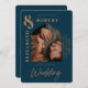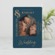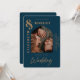 marinho azul de na moda com fotografia de casal arquivada moderna convite de casamento com texto ouro em negrito e tipografia manuscrita em chic.