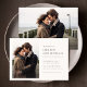 Capture a essência do eterno do seu amor com o nosso Clássico Convite para Casamento de Fotos Moderno Elegante 2. Este convite de casamento de na moda apresenta uma foto costeira ao ar livre, perfeita para casamentos de destino. O design preto e branco minimalista apresenta sofisticação, ideal para o inverno, o outono ou as cerimônias de outono. Com tipografia rústica e um olhar contemporâneo, é uma forma chic e memorável de anunciar seu dia especial.