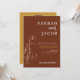 Este convite para o casamento apresenta uma fonte temática retrorada, ferrugem divertida e divertida e combinação de cor de mostarda, e uma simples flor botânica terrestre. Adicione facilmente sua foto e seu site de casamento no slot de fotos arquivadas na parte de trás para um toque pessoal. Este convite de casamento é perfeito para o frio que vibra casal e se conjuga perfeitamente com qualquer coisa da coleção Farrah.