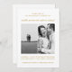 Simples e moderno convite para o casamento de duas fotos apresenta uma design minimalista e uma tipografia dourada em fundo branco.