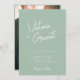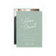 Um simples e elegante convite de casamento moderno em verde-sábio e branco. Apresentando uma fonte manuscrita de script para os nomes emparelhados com texto moderno limpo. Personalize o texto, os nomes, as fotos e as cores de fundo para ajustado do seu tema de casamento exclusivo. Este convite é adequado para cerimônias e recepções de casamento modernas, modernas ou informais. Preencha a papelaria do casamento com o resto da nossa Coleção de Casamentos de Script Mínimo Moderno.