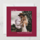 Este belo convite de casamento vermelho de amora-branca é moderno, minimalista e simples. Ele apresenta um design quadrado com sua foto na frente cercada pela legenda "To Be Wed" e seus nomes. O verso tem toda a redação do convite de casamento, juntamente com um espaço opcional para o seu site. É uma forma única de convidar seus amigos e família para compartilhar seu dia especial.