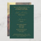 Um roteiro de ouro elegante e uma foto do casal feliz são apresentados nestes convites de casamento verdes sazonais. Uma combinação de cores adorável para um casamento de natal. Para editar o texto e alterar a foto, clique no botão personalizar.