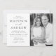 Convite para casamento de fotos moderno com detalhes do seu casamento à esquerda da design em letras negras com acentos de escrita de caligrafia. Personalize a frente do convite adicionando seus nomes, detalhes do casamento e fotos verticais do noivado. A parte traseira do convite fornece espaço para texto e fotos adicionais. Projetado para coordenar com a nossa coleção de casamento do Modern Elegance.