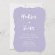 A escolha perfeita para o seu casamento roxo. Este convite elegante complementa um tema de casamento roxo, oferecendo ideias inspiradoras de casamento roxo. Com o seu tema de casamento roxo leve, ele se ajustado perfeitamente em um tema de casamento lavanda ou casamento lilás. Ideal para um casamento de jardins brancos ou tema de casamento de flores silvestres, também se encaixa nas ideias de casamento de primavera e jardim, fazer perfeito para casamentos de verão e ideias de casamento de primavera.