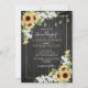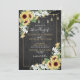 Crie o convite perfeito para o casamento com este bonito, tendencioso amarelo de girassol rústico e design floral de cor d'água das cinzas com tipografia de guiões com letra de mão, e um fundo de madeira de cinza com luzes de cordas. A parte de trás do convite apresenta a sua fotografia de noivado favorita. Entre em contato com o designer para produtos correspondentes. Copyright Elegant Invites, todos os direitos reservados.