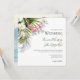Esta bela design de casamento floral cor-de-rosa-praia tropical apresenta uma bela combinação de orquídeas elegantes, brancas e cor-de-água, e folhas de palmas tropicais e verde com sombras graciosas sobre fundo branco e elegante roteiro com letra de mão. Fácil de personalizar com suas próprias informações, e a cor de fundo também é personalizável. Estes cartões são perfeitos para o casamento tropical, casamento de praia de destino, casamento floral, ou para qualquer noiva que ame orquídeas tropicais e verde. Fácil de personalizar com suas próprias informações, e a cor de fundo também é personalizável.