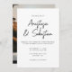 Convide seus convidados no estilo do eterno com este moderno convite para casamento de fotos em preto e branco, elegante, com tipografia fluente de script e um layout limpo e minimalista. A paleta monocromática e a foto personalizada adicionam um sentimento sofisticado e romântico, fazer esse design perfeito para casamentos clássicos, quicos, formais ou contemporâneos. Com a caligrafia na moda negra e o espaço para incluir sua foto de noivado ou casal, este convite é ideal para casais que buscam uma maneira simples, mas deslumbrante de anunciar seu grande dia.