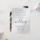 Convide sua família e amigos para sua elegante celebração de casamento azul e prateado em marinho com estes minimalistas, mas elegantes convites de casamento fotográfico com uma letra moderna. Itens correspondentes disponíveis.