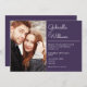 Convite de casamento de script moderno com sua foto especial e detalhes de celebração em um fundo roxo. Projetado por Thisnotme©