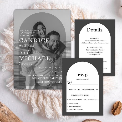Convites Casamento De Fotografias Do Arco Branco E Preto Mo