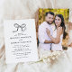 Convide seus convidados com elegância de eterno usando este convite minimalista de casamento. O design apresenta um delicado arco preto desenhado à mão no topo, adicionando um toque romântico ao layout clássico preto e branco. Seus nomes e detalhes de casamento são mostrados abaixo em tipografia refinada, criando uma apresentação limpa e sofisticada. A parte traseira da placa apresenta uma foto de noivado vertical com sangramento de cheio, oferecendo um elemento pessoal e memorável que seus convidados gostarão. Perfeito para casamentos modernos, românticos ou negros.