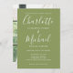 Apresentando nomes de estilo de assinatura, este elegante convite de casamento pode ser personalizado com suas informações em letras quentes em um fundo verde-musgo com sua foto escolhida no verso. Você pode personalizar a cor de fundo para corresponder ao seu tema de casamento. Projetado por Thisnotme©