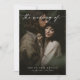 Projetado para casais de estilo, este moderno convite minimalista de casamento de fotos combina o tipo de serifa refinado com o software através de tons de floresta profundos. A frente é uma imagem sangrada por cheio; o reverso apresenta outra foto favorita, seus detalhes de evento e um código QR que liga ao seu site de casamento para obter informações sobre RSVP, viagem e agendamento sem esforço. Edite facilmente o texto e faça upload das suas imagens para uma aparência polida e premium que complementa boho, chic rústica e casamentos florestais de destino.