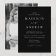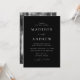 Convite de casamento minimalista e moderno com detalhes de seu casamento em letras brancas com acentos de escrita de caligrafia. O fundo preto apresenta speck brancos sutis para um único design de convite para casamento. A parte de trás do convite de casamento da moda mostra sua foto de noivado vertical. Projetado para coordenar com a nossa coleção de casamento do Modern Elegance.