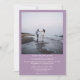 Este convite para o casamento é simples, moderno, minimalista e bonito. Ele apresenta sua foto quadrada em um fundo claro roxo ou colorido de lavanda com texto branco simples contendo todas as informações importantes. O design limpo é artístico e elegante.