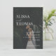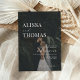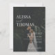 Convite moderno para casamento com design de tipografia minimalista a preto e branco. Personalize facilmente suas informações e fotos para convites de casamento personalizados.