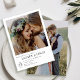 Sua história de amor merece um convite tão único e bonito quanto a jornada que você está prestes a começar. Este moderno convite de casamento de fotos em preto-e-branco combina sofisticação do eterno com um toque pessoal, mostrando sua foto favorita do noivado na frente e uma segunda foto de sangria do cheio no verso. É mais do que apenas um convite — é um guardião que seus convidados apreciarão, refletindo o amor e a alegria de seu dia especial. A inclusão de uma foto sangrada por cheio no verso adiciona uma camada íntima de narrativa, oferecendo outra visão da sua história de amor. Quer você escolha um retrato romântico, um momento fantoche, ou uma memória apreciada, esse detalhe garante que seu convite é realmente seu. É a maneira perfeita de anunciar seu casamento com elegância e emoção sincera. Planejar uma comemoração inesquecível? Vamos criar um pacote correspondente — placas RSVP, cartazes ou menus — que gravatas tudo juntos sem problemas. Alcance-se para colaborar, e vamos fazer a sua papelaria de casamento tão especial quanto o seu amor. Copyright Anastasia Surridge, todos os direitos reservados.