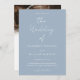 O design moderno e elegante imprimiu Chic Dusty Blue & White Calliografia Script Mínimo de RSVP de Código QR Convite de Casamento de Fotos que pode ser personalizado com seu texto. Clique no botão "Personalizar" e use nossa ferramenta design para modificar este modelo. Veja a Design de Arte Gráfica para outros produtos que combinam com este design!