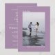 Este belo convite para casamento roxo ou lavanda empoeirada é moderno, minimalista e simples. Ele apresenta um design vertical ou orientado para retratos com sua foto na frente cercada pela legenda "To Be Wed" e seus nomes. O verso tem toda a redação do convite de casamento, juntamente com um espaço opcional para o seu site. É uma forma única de convidar seus amigos e família para compartilhar seu dia especial.