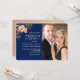 Convites Casamento de Fotos Azul com Marinho Rosa Floral Ru