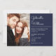 Convites Casamento de Fotos Azul do Marinho de Script Elega