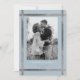 Convite para casamento de fotos. Fundo azul gelado. Filtro preto e branco aplicado à foto. Prata Metalizada.