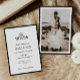 O moderno cartão de convite de casamento preto e branco com foto de volta combina elegância clássica com estilo pessoal, com um design monocromático de eterno e uma foto personalizada de tamanho de cheio no reverso. A frente exibe uma tipografia minimalista com uma mistura refinada de fontes de serifa e de script, enquanto a parte de trás transforma o convite em uma guarita com espaço para um noivado ou retrato de casal favorito. Ideal para casamentos de gravatas negras, cerimônias de cidades ou celebrações contemporâneas, este convite de casamento de fotos combina tradição e personalidade em um layout sofisticado, fazer perfeito para casais que buscam formalidade e toque pessoal. Disponível como placas impressas ou um download digital instantâneo.