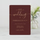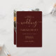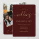 chic e moderno canto arredondado emerald burgundy convite de casamento em segundo plano com o roteiro do rico "WEDDING" e texto itálico profissional para informações de casamento na frente, três fotos com quadro de ouro e iniciais de monograma no verso.