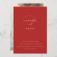 Anuncie seu dia especial com nosso Convite para Casamento de Fotos Simples e Simples Crimson Red Crimson. Esta elegante e moderna design combina o chic clássico com um guião branco limpo, num fundo vermelho impressionante, perfeito para a celebração da na moda. Preencha seu pacote com as placas "Salvar a Data", as placas RSVP e as notas "Obrigado", cada uma projetada para manter a mesma simplicidade sofisticada. Personalize o seu convite com uma fotografia para criar um eterno para os seus convidados.