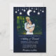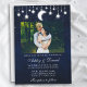Convite de casamento celestial. Céu azul-aquático com estrelas, lua e luzes de cordas. Foto do casal.