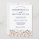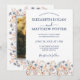 Mergulhe no dia do seu casamento na beleza encantadora do nosso Concurso de Casamento Dusty Blue e Peach Wildflower! Esta design inspirada em vassoura, adornada com flores selvagens delicadas em tons de azul empoeirado e pêssego, estabelece o tom perfeito para uma celebração romântica e inspirada na natureza. O verso permite que o casal adicione uma foto apreciada, adicionando um toque pessoal ao convite. Personalize os detalhes para tornar este convite exclusivamente seu e convide convidados a se juntar à união alegre.