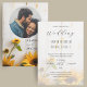 Os girassóis amarelos contra o celeiro branco criam uma leve sensação rústica. Acentuado pela caligrafia de script e sua foto para um toque personalizado elegante.
